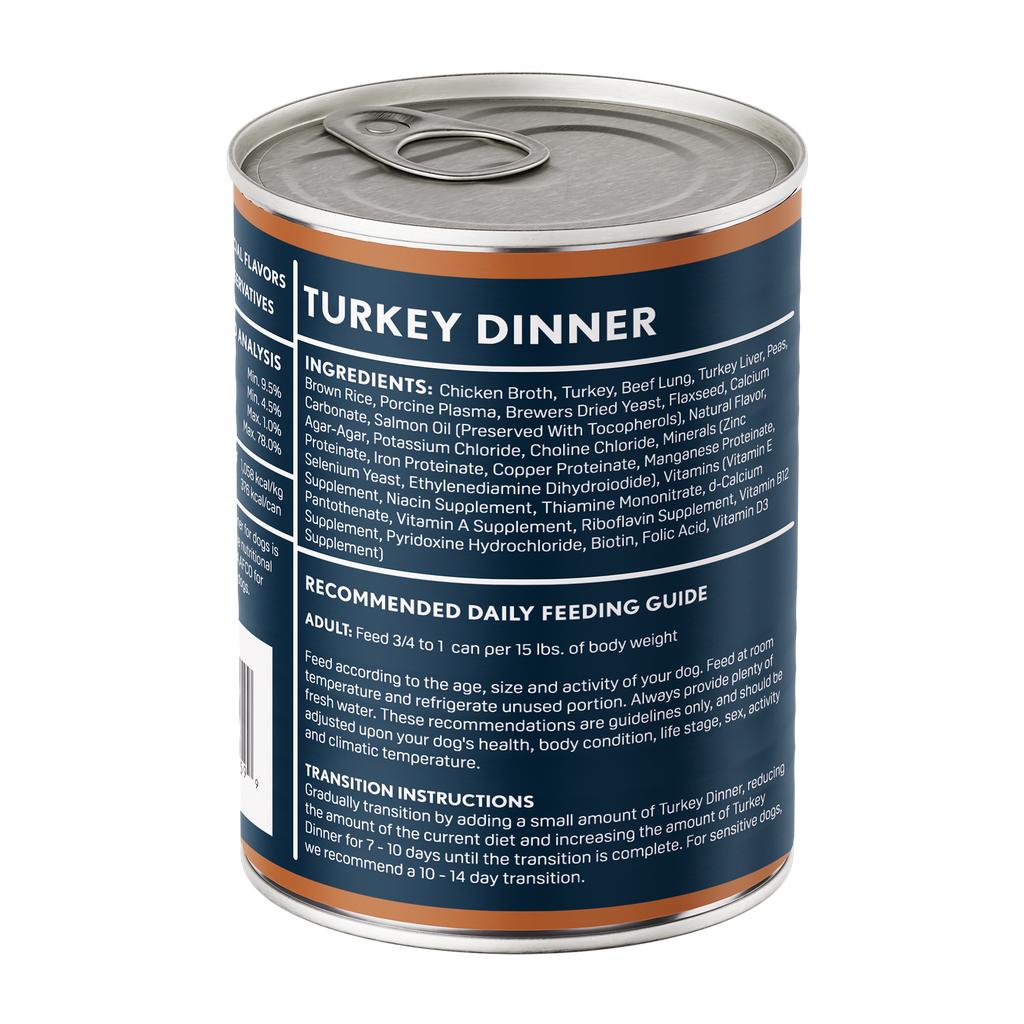 Treat your dog to a wholesome and hearty meal with Next Level Turkey Dinner in smooth pâté style. This premium wet dog food recipe is crafted to deliver the perfect balance of flavor and nutrition your dog deserves. This premium recipe is free from artificial flavors, colors, and preservatives, making it a mealtime choice you can feel great about. Whether served as a meal or a tasty topper to dry kibble, this wet food will have tails wagging and bowls licked clean!