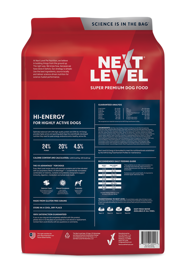 Optimally balanced with 24% high-quality protein and 20% fat, Hi-Energy provides highly active and sporting adult dogs the scientifically-developed nutrition they need for peak energy, endurance and a healthy, active life.
