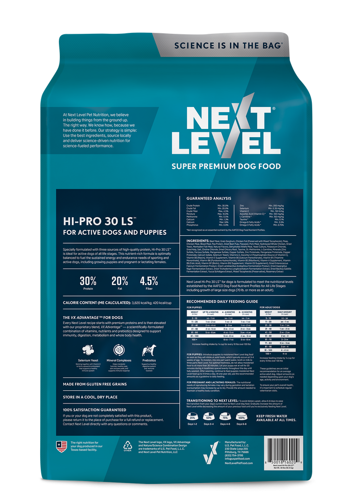 Specially formulated with three sources of high-quality protein, Hi-Pro 30 LS™ is ideal for active dogs of all life stages. This nutrient-rich formula is optimally balanced to fuel the sustained energy and endurance needs of sporting and active dogs, including growing puppies and pregnant or lactating females.