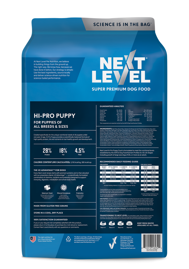 Created specifically for the unique nutritional needs of all puppies under one year of age, Hi-Pro Puppy provides a scientifically-balanced formula of high quality protein, fat and nutrients to fuel healthy growth and development.