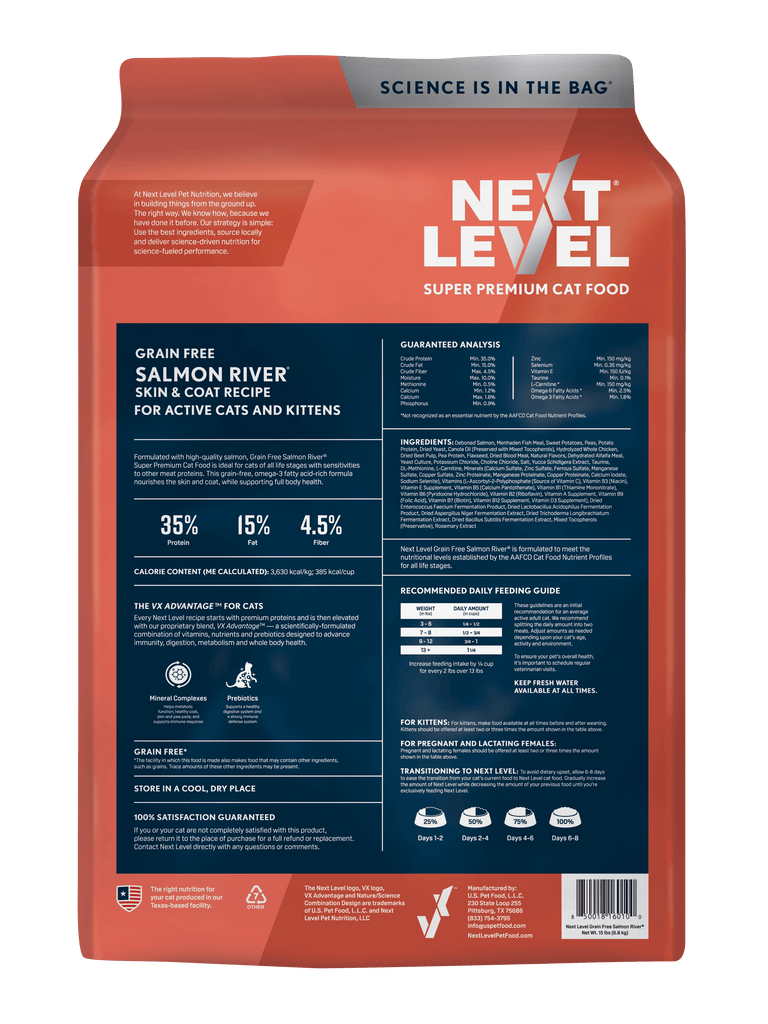 FOR ACTIVE CATS AND KITTENS Formulated with high-quality salmon, Grain Free Salmon River® Super Premium Cat Food is ideal for cats of all life stages with sensitivities to other meat proteins. This grain-free, omega-3 fatty acid-rich formula nourishes the skin and coat, while supporting full body health. Available Bag Sizes: 15lbs |